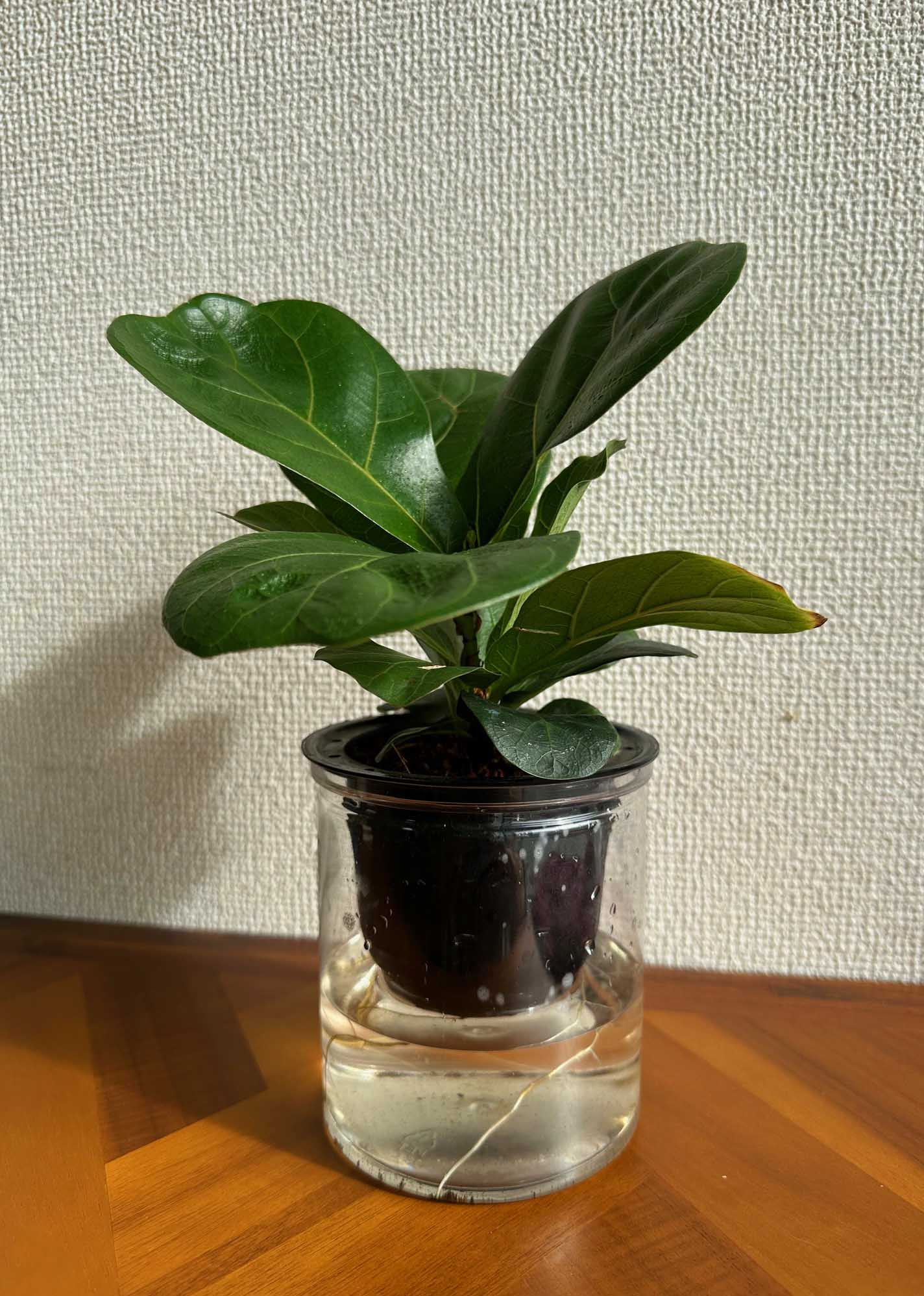 これは7月頃、ホームセンターの廃棄処分のカゴに入っていた植木です。葉っぱはペッチャンコで枯れる寸前。係りの方に「廃棄されるのなら頂けませんか」と聞いたら「廃棄処分用の伝票処理がいるのでごめんなさい」と断られました。850円。植木鉢が珍しかったので買っちゃいました。ところが水を入れておいたら、こんなに元気になりました。調べてみたらカシワバゴムノキだそうです。無駄遣いかとおもったけれど、ヨーかった。