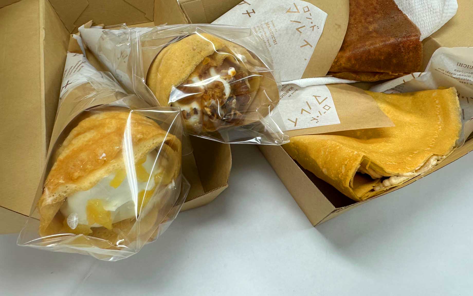 アパレルデザイナーだったお友達が、クレープ屋さんをはじめました。焼き方をきちんと練習したそうです。薄いクレープの皮の焼き方が難しいそうです。4種類のクレープをいただきました。栗入りのものや、レモンがはいっているもの、クルミ入りなど、どれもおいしい。今度お店にみんなで伺います。サンキューです。