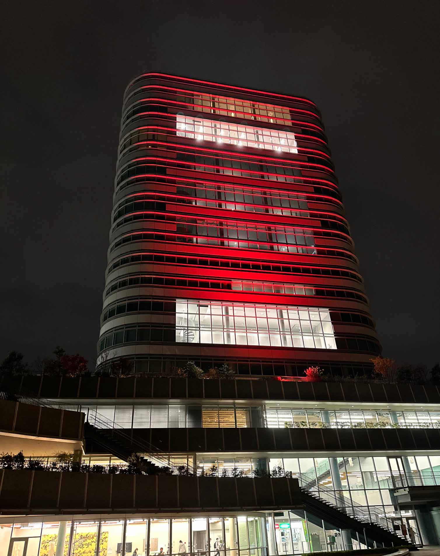 12月1日は、世界エイズデーだそうです。岐阜の市庁舎が真っ赤にライトアップされていました。建物が大きいだけに、なかなかの壮観です。実は先月の夕方、岐阜市役所に行った時、青色にライトアップされていたので気がつきました。糖尿病デーだったそうです。次回はいつかなとホームページで調べて~。今日はエイズデーで赤です。大きな建物なので壮観です。楽しませてもらっています。