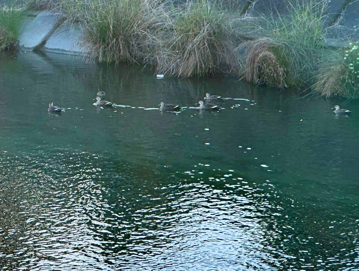 少し前にこの小川の川岸を通った時、ひとつがいの鴨を見つけましたが、なんとこんなに数が増えていました。数十匹もいるようです。どこかから飛んできているのでしょう。この小川はシラサギがいたり、鴨が住みつくのだから、きっと鳥たちにとって住みやすい環境なのかも~。バローに買い物に行く道中です。今日は鴨ちゃん何匹いるかな?自転車の買い物も楽しいものです。