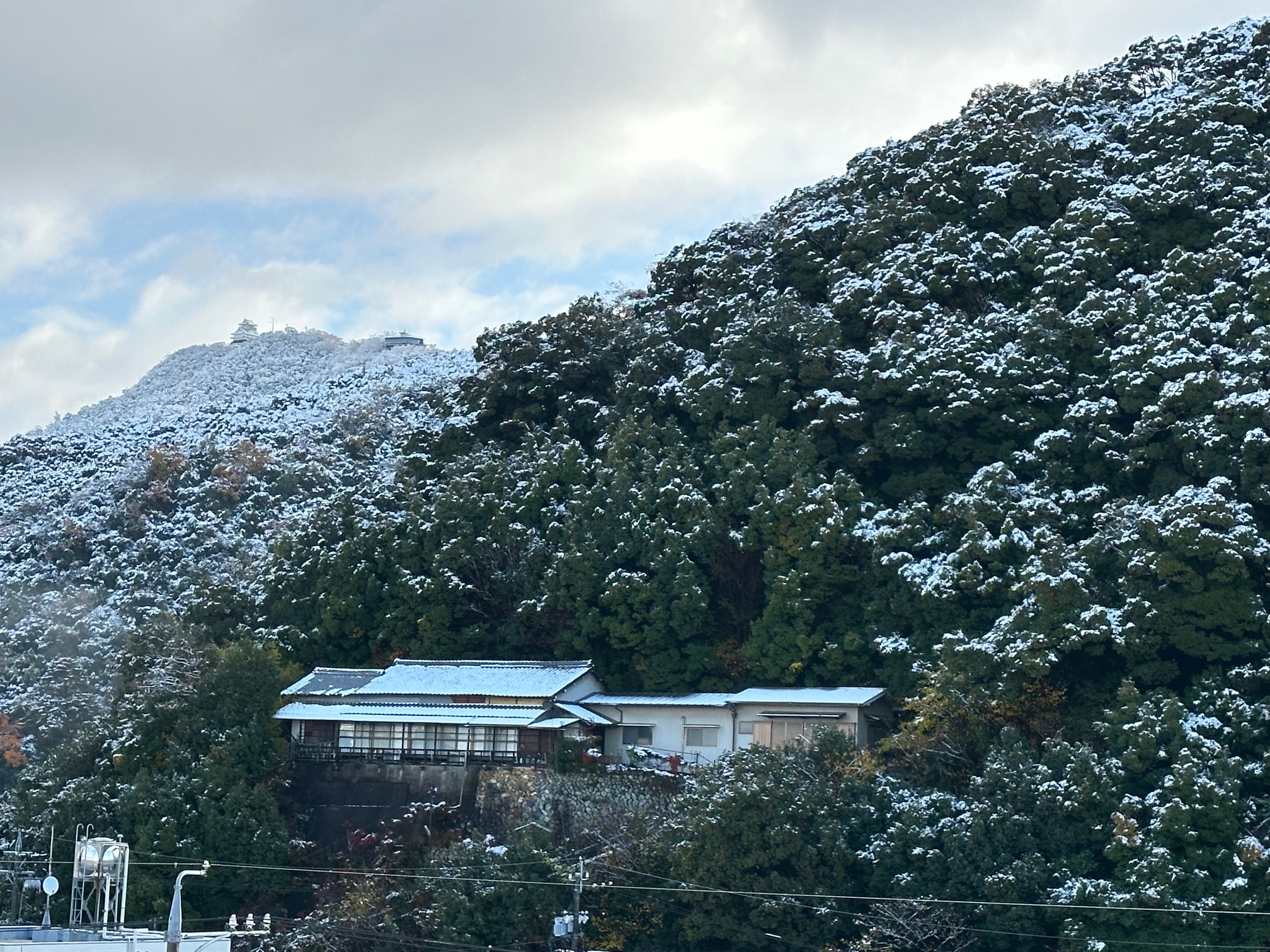 今朝なんだかいつもより明るいので、ひょっとして雪がとおもい、カーテンを開けてみたら、岐阜城に初雪が積もっていました。綺麗です。寒い。冬将軍到来。