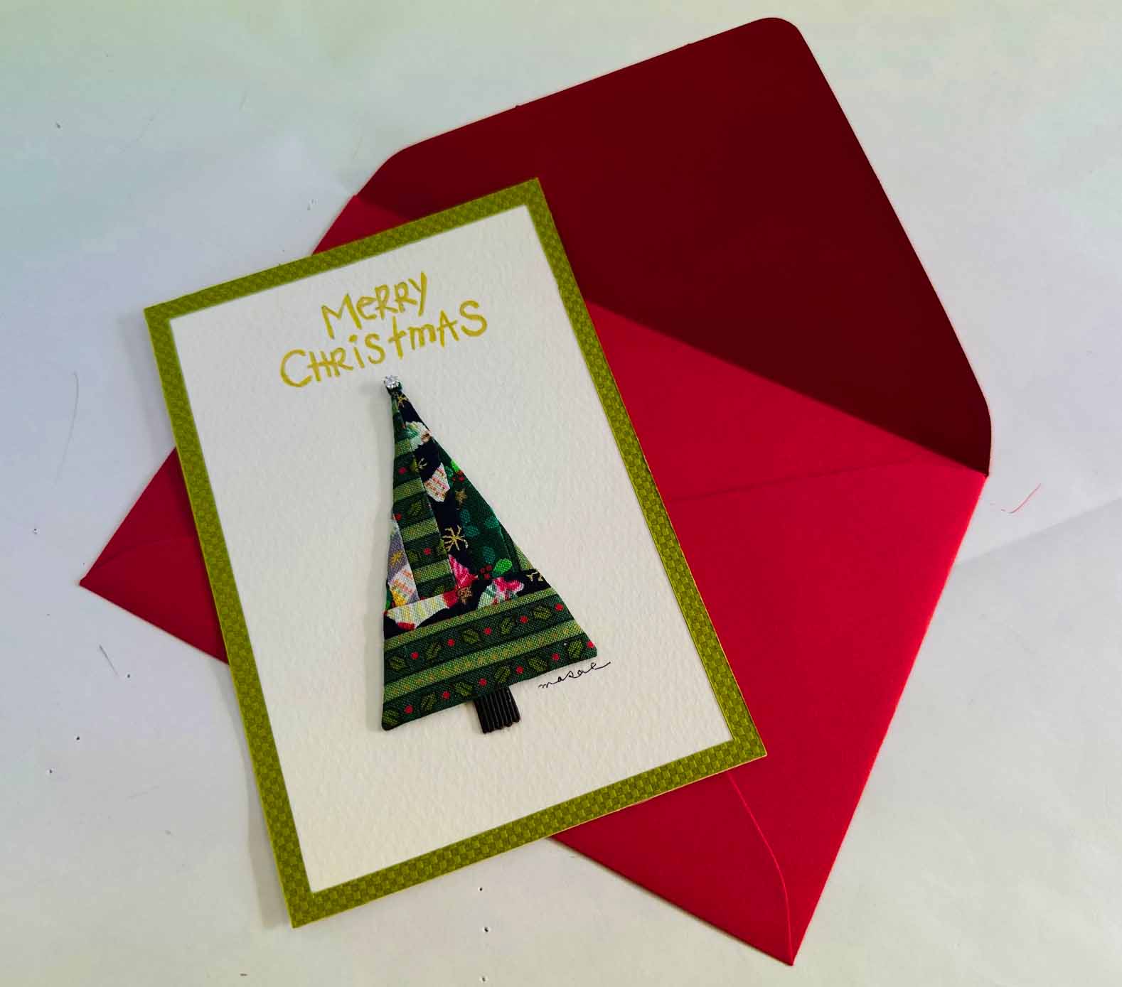 お友達から素敵なクリスマスカードを頂きました。なんと手作りです。ツリーの部分だけで十数枚のパーツがつかってあります。てっぺんの部分にはきらりと光るダイヤモンドが~~。おしゃれですねー。生チョコと美味しいクッキーに添えてありました。嬉しい嬉しいクリスマスプレゼント。ありがとう。