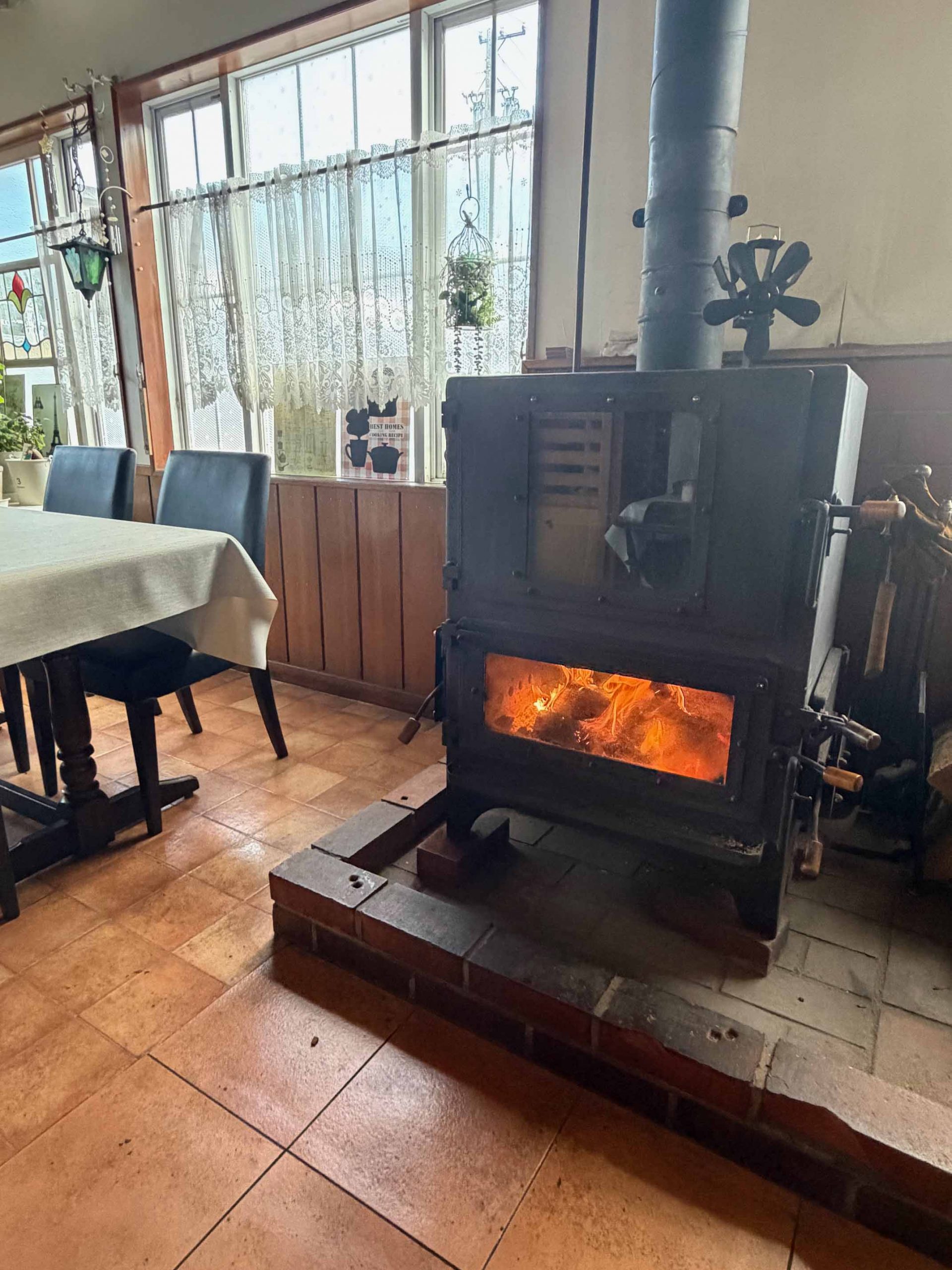 スキーの帰りにイチコロ(156号線)沿いにあるカレー屋さん ”風見鶏” に行きました。店内に一歩入ると、なんだかふわっとした温かさです。大きな薪ストーブがありました。風格があります。薪が燃えている真っ赤な色が、火を直接感じ、真っ赤な炎の美しさや、ゴーという音が楽しめます。カレーも旨い。今シーズンは毎週行くことにしました。