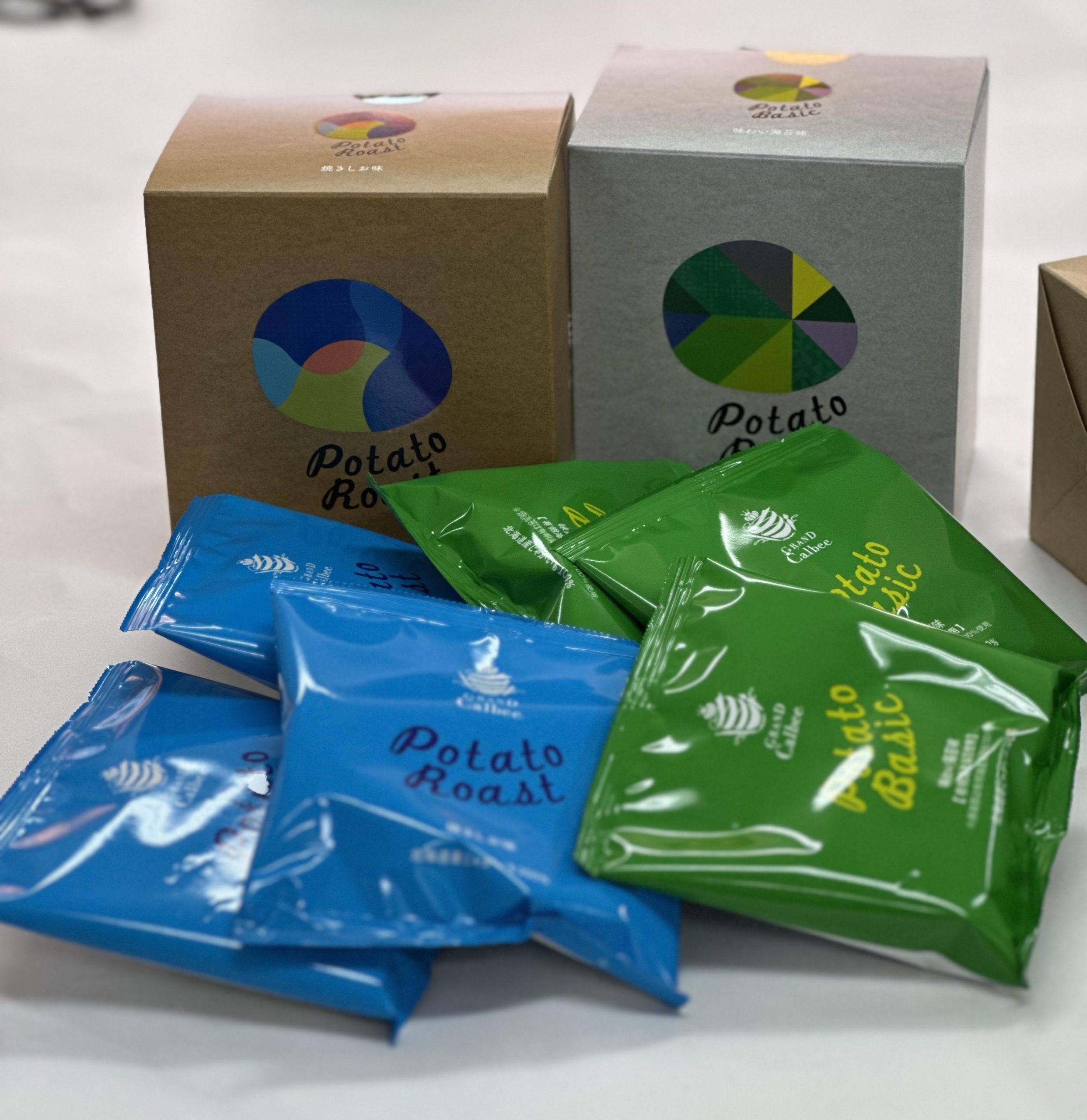 旅行の土産ですと、ポテトチップスを二箱も頂きました。お洒落な箱に入っています。中身は普通のポテチですが、5枚ずつパッケージされています。湿気なくて良いです。ただパッケージ代がかかっているなーと感じてしまいました。たかがポテチ、されどポテチですか!!。ありがたくいただきました。(笑)