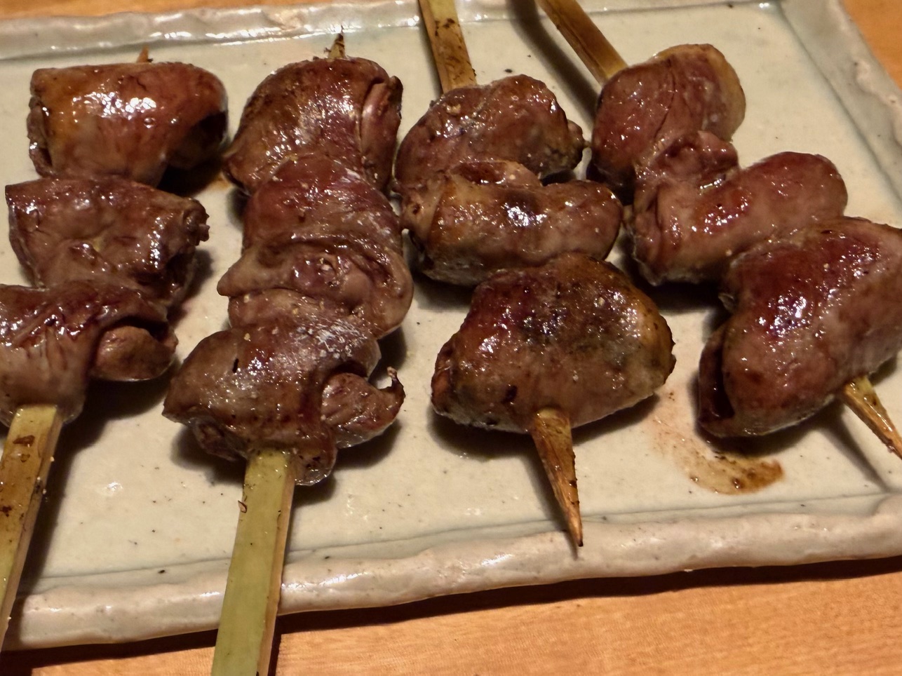 柳ケ瀬のちょっと高級な感じの焼き鳥屋さんで夕食をとりました。器が多治見の焼き物で、和の暖かさが伝わってきます。まず器に惚れました。焼きたて焼き鳥はさすがに美味しい。私が最も嬉しかったの ”とりがらスープの茶漬け”。さっぱりしていてこくがあって、サラサラで~~ 珍味です。また行たいです。
