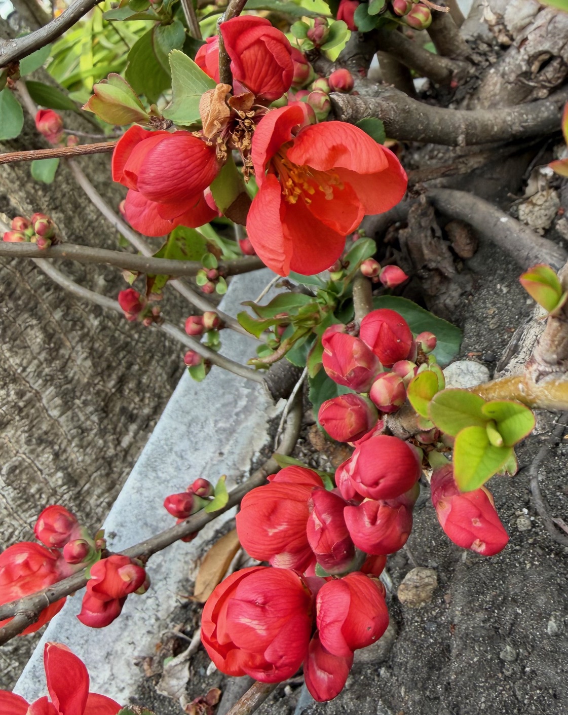 梅の花によく似ているボケの花です。なんだか自分のことを言っているみたいで、ちょっと嫌な名前ですが~。正式には木瓜(ボケ)。ボケの花言葉は「先駆者」「妖精の輝き」。なかなか良いです。道端に咲いていましたが、見つけるとおもわず ”ボケだー” と叫んでしまいます。